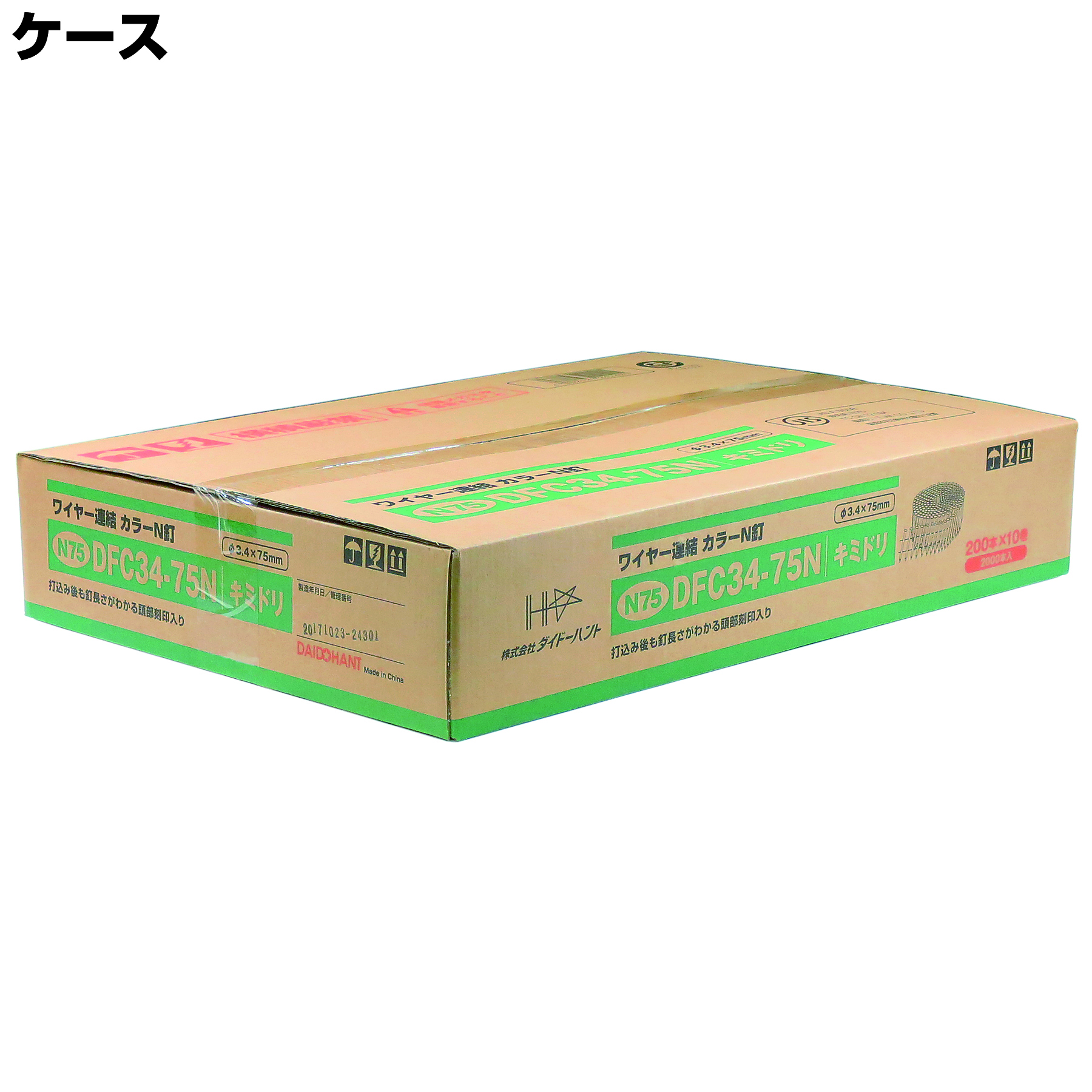 ワイヤー連結カラーN釘 ▽…DFC34-75N キミドリ